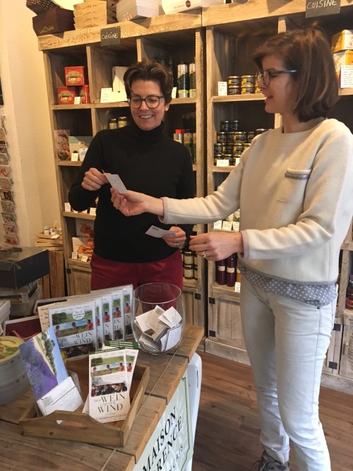 Anfang des Monats fand in Kooperation mit dem Modeatelier „Vavite“ das Adventsshoppen inkl. Verlosung der DVDs zum Film „Der Wein und der Wind“ statt. Die Glücksfee, Birgit Kropff, hat die 5 Gewinner/-innen gezogen.