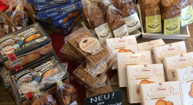 Dank meines Vermieters in der Bretagne entdeckt, heute im Weihnachtssortiment: Bretonische Kekse von La Trinitaine. Dabei sind Küstenkrokant mit Mandeln oder mit gesalzenem Karamell, Financiers (zartes Gebäck mit Karamell und Mandelpulver), Palets breton (dicke Salzbutterkekse), Galettes mit Schokolade und mit Galettes gefüllte traditionnelle Metalldosen.