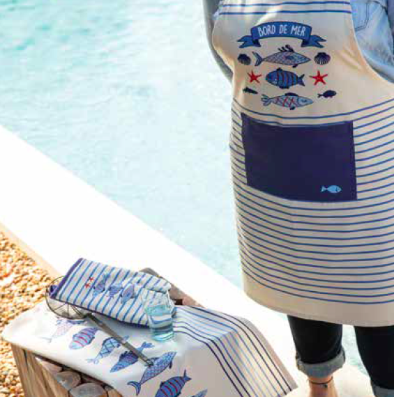 SDE-Kochschürze-Baumwolle-Bretagne-Les petits poissons-72x90cm-mit verstellbarem Nackenband