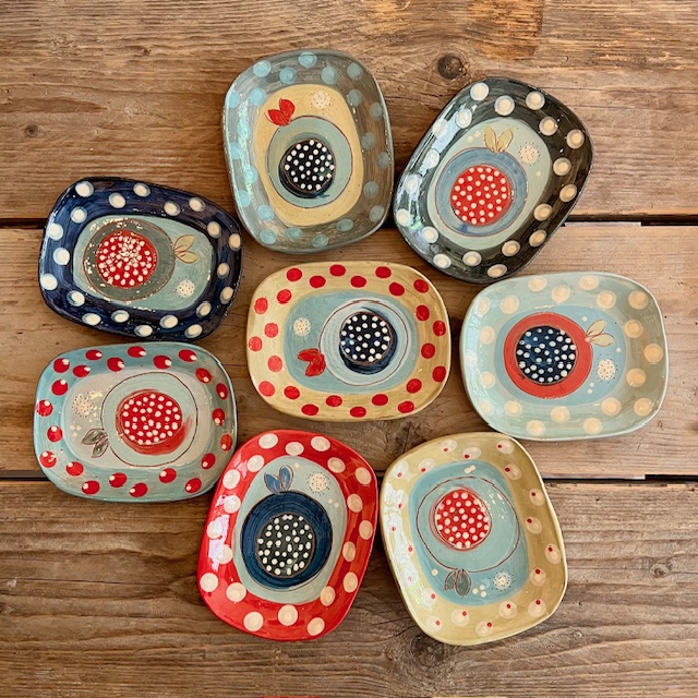 • Rechteckige kleine Teller, handbemalte Keramik, L’Atelier de Julie, 15,5x12cm